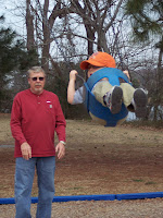Today is Jason's 33rd birthday and we celebrated in style. This morning I made Mickey Mouse pancakes for breakfast. Then daddy went on a 30 mile bike ride in the COLD. For lunch we had Mexican followed by a round of Putt Putt. We had steaks and brownies for dinner. Jason got his new electric guitar and he is quite a rocker!